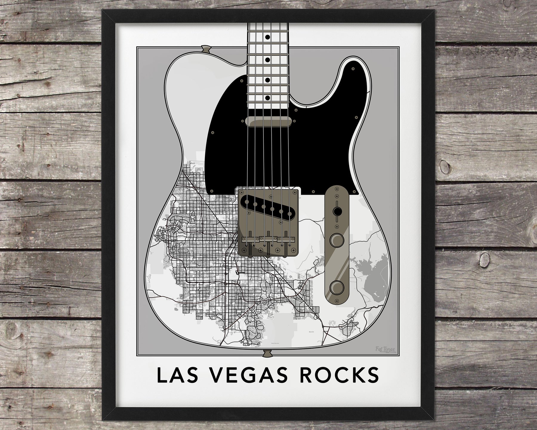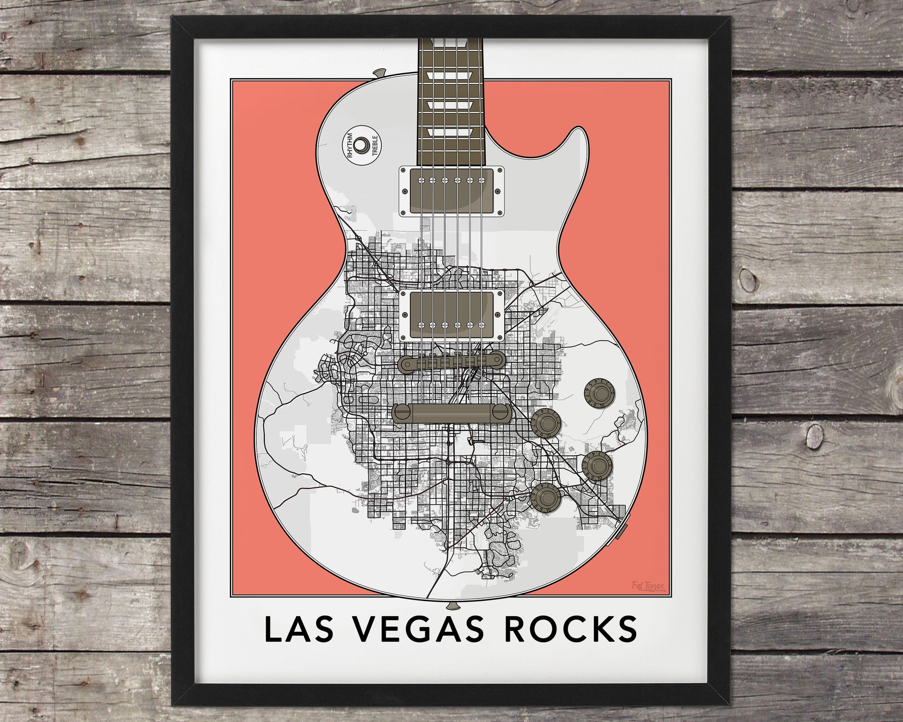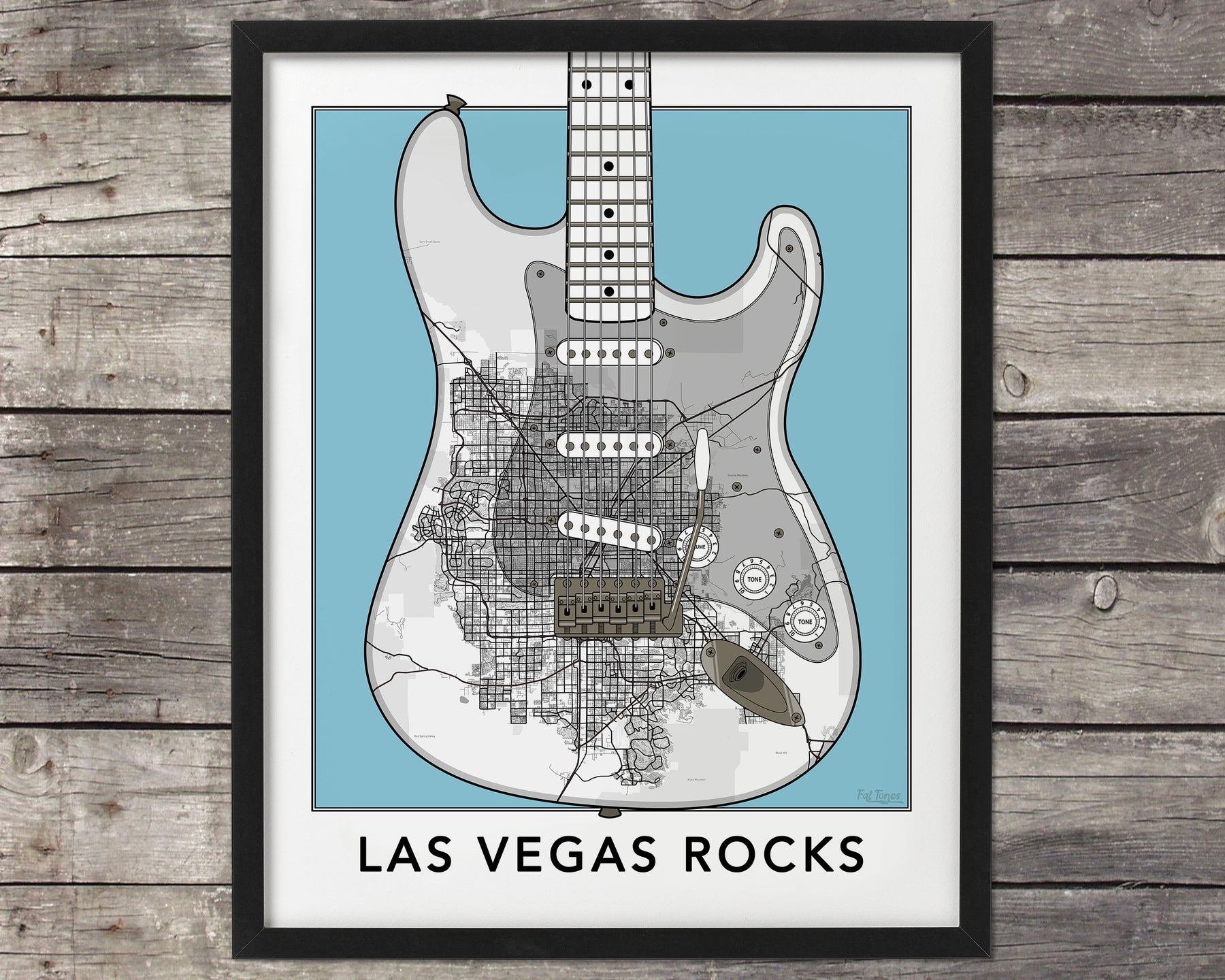 This print is a mix of a modern map overlaid on a great guitar illustration!