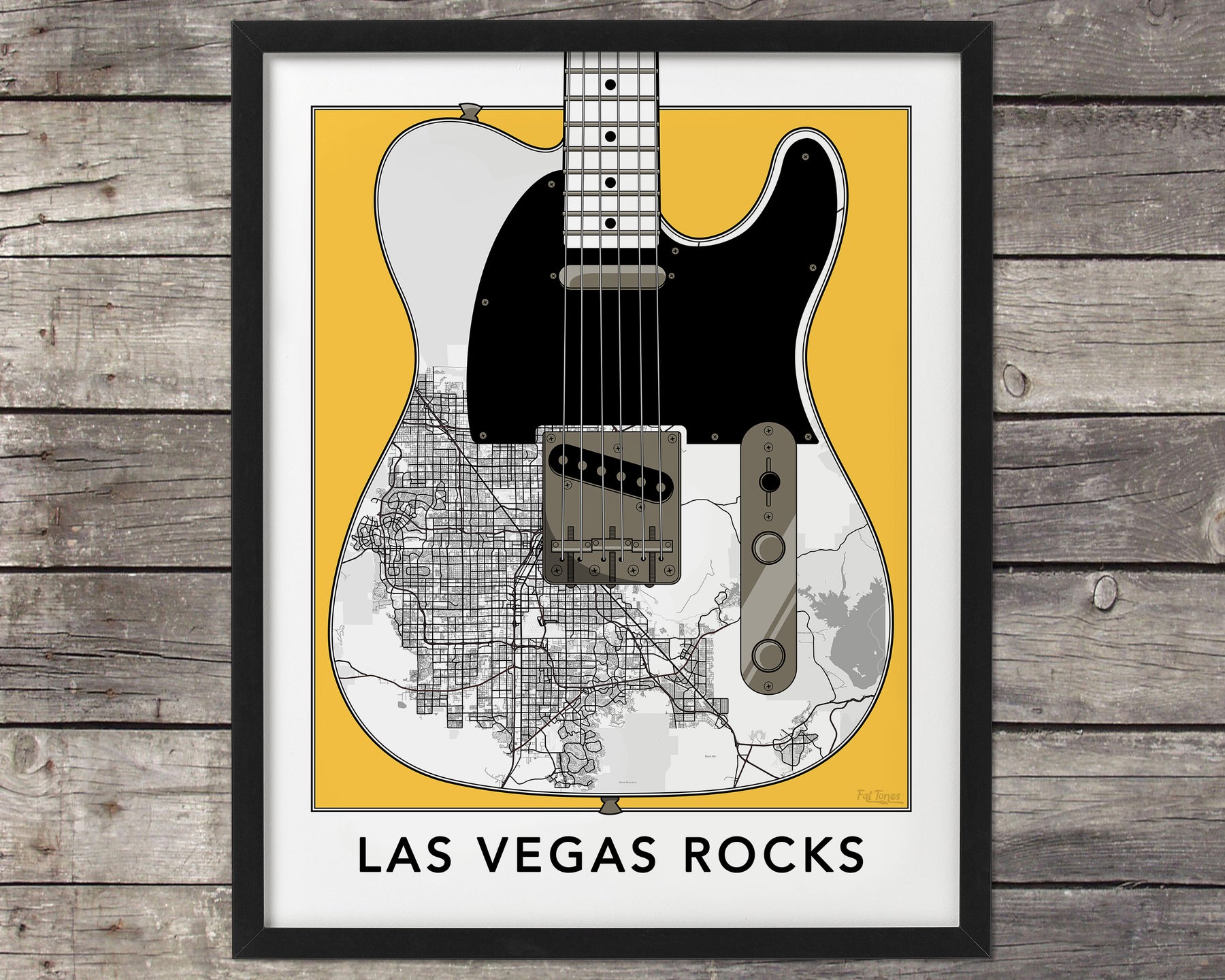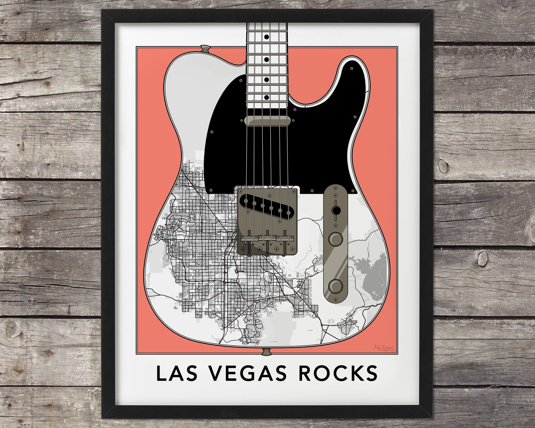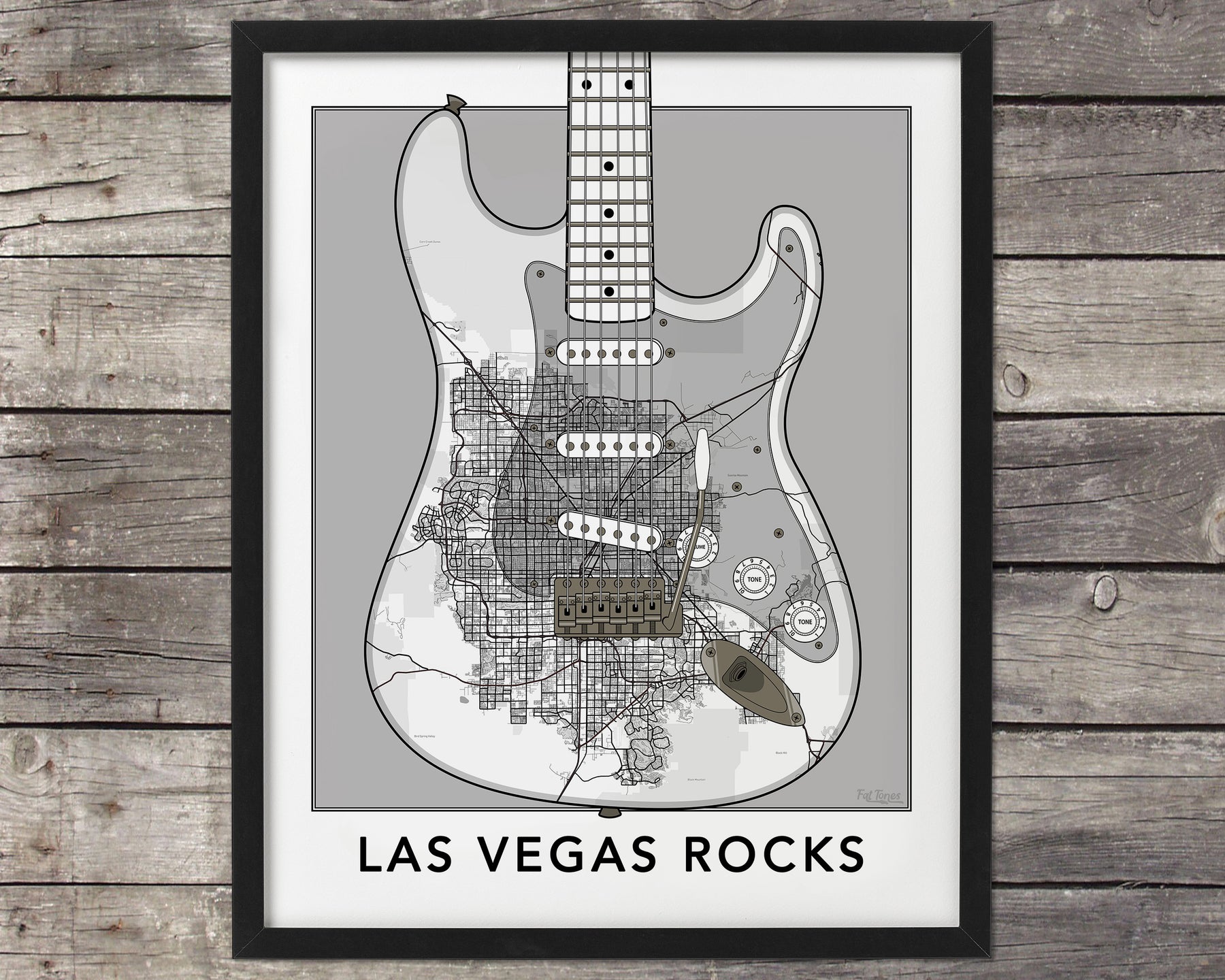 This print is a mix of a modern map overlaid on a great guitar illustration!