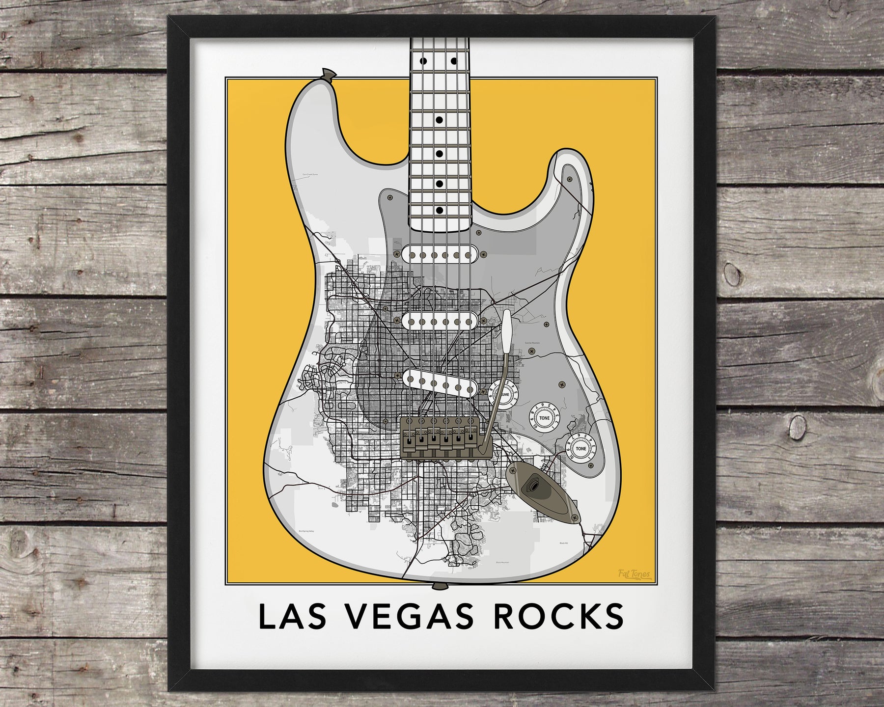 Show your city rocks with this great print. A great combo of a love of music/playing/musical instruments and your community.