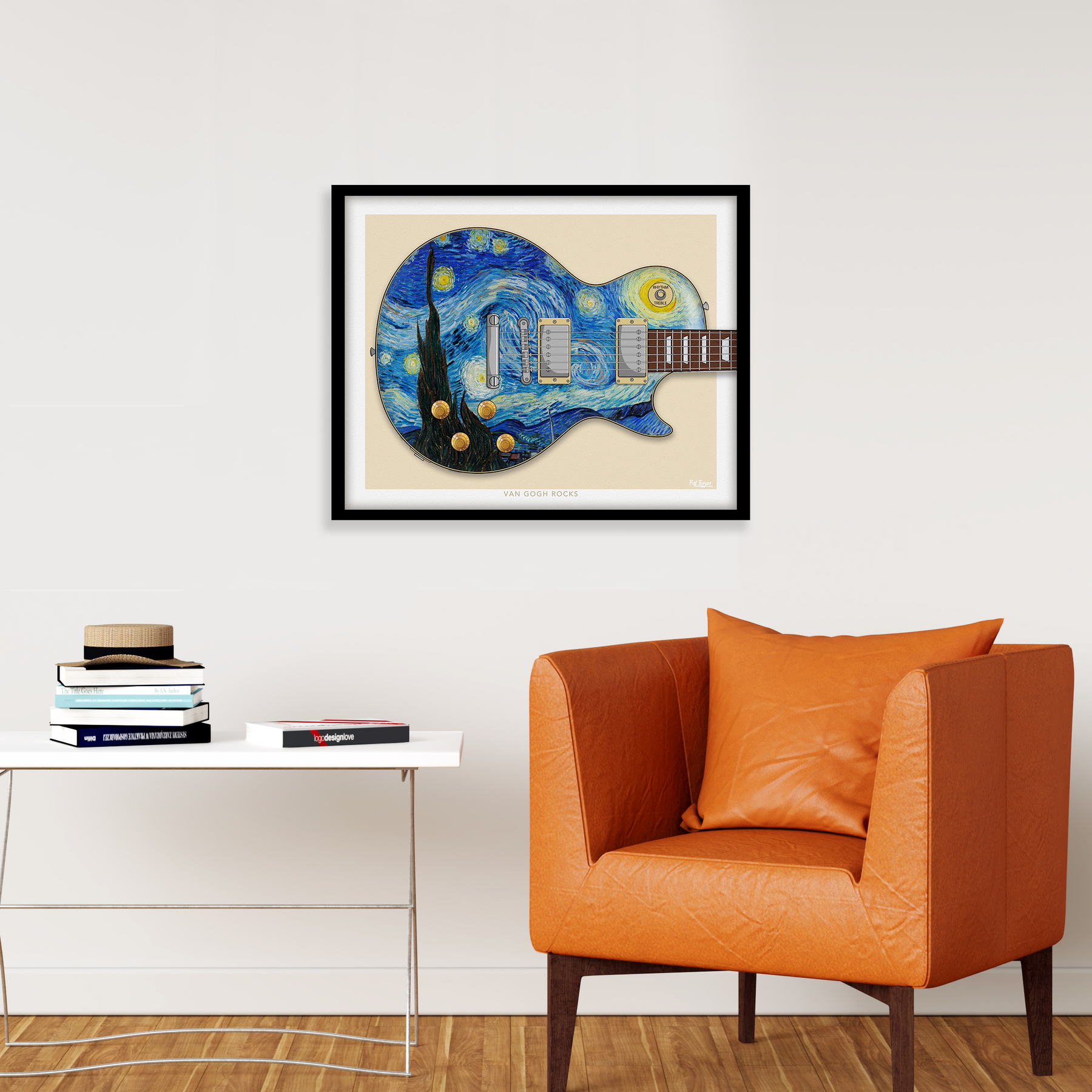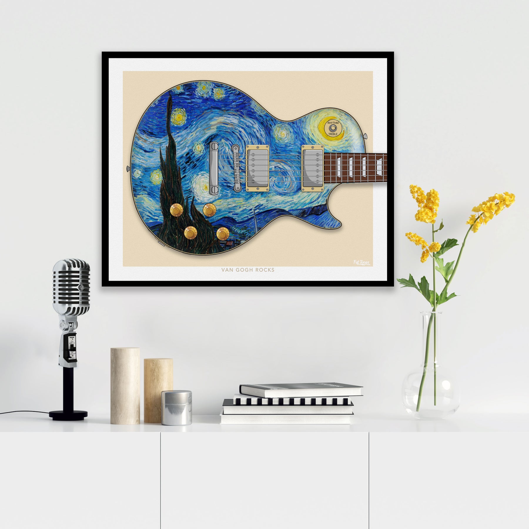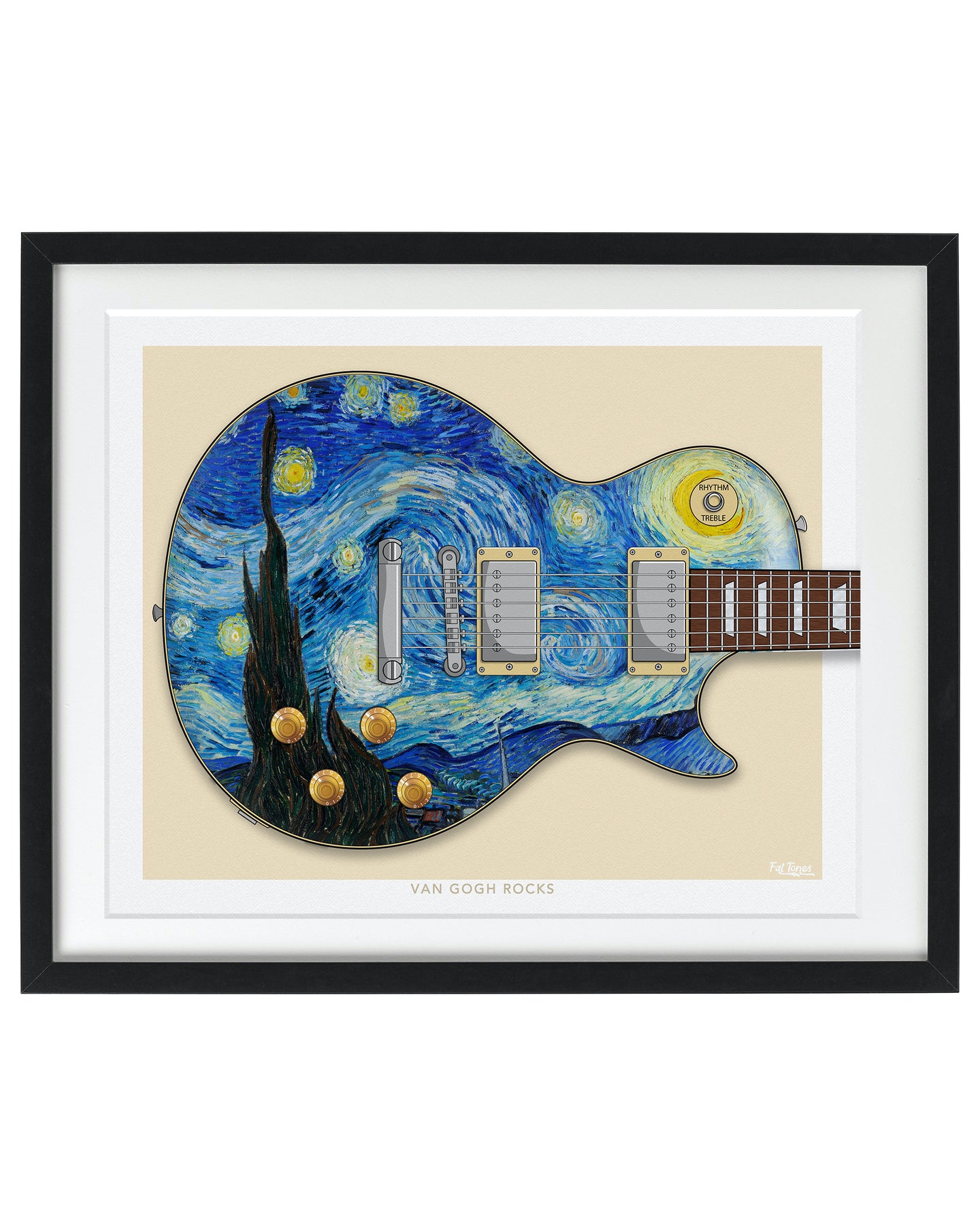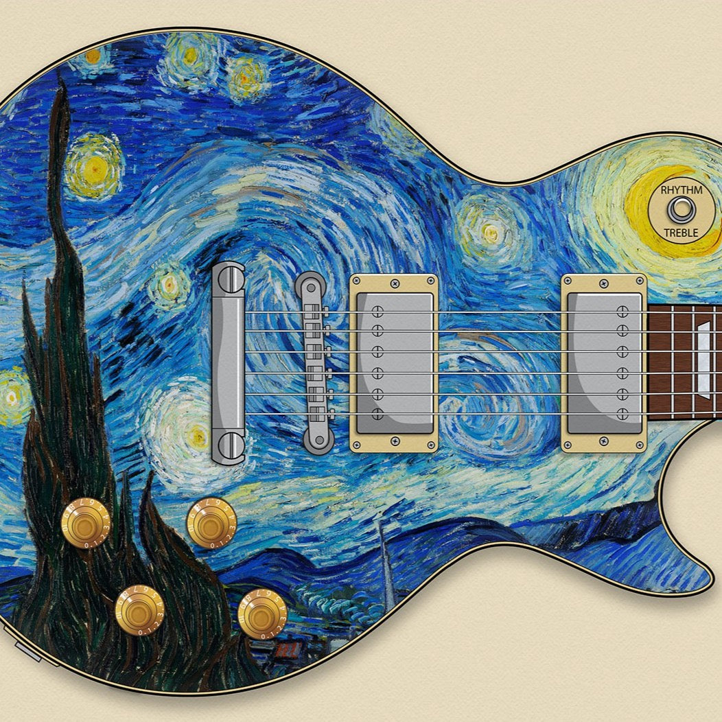 This art print is based on a LP guitar and the 'Starry Night' painting by Vincent Van Gogh.